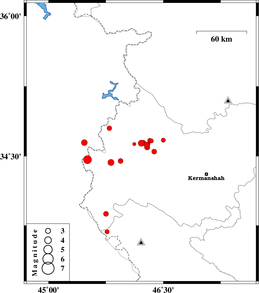 | 2018/10/13 | 00:13:44.8 | 03:43:44.8 | 34.669 | 46.324 | 16 | ML2.7 | Kermanshah Province, 21 km South-West of Javanrud |