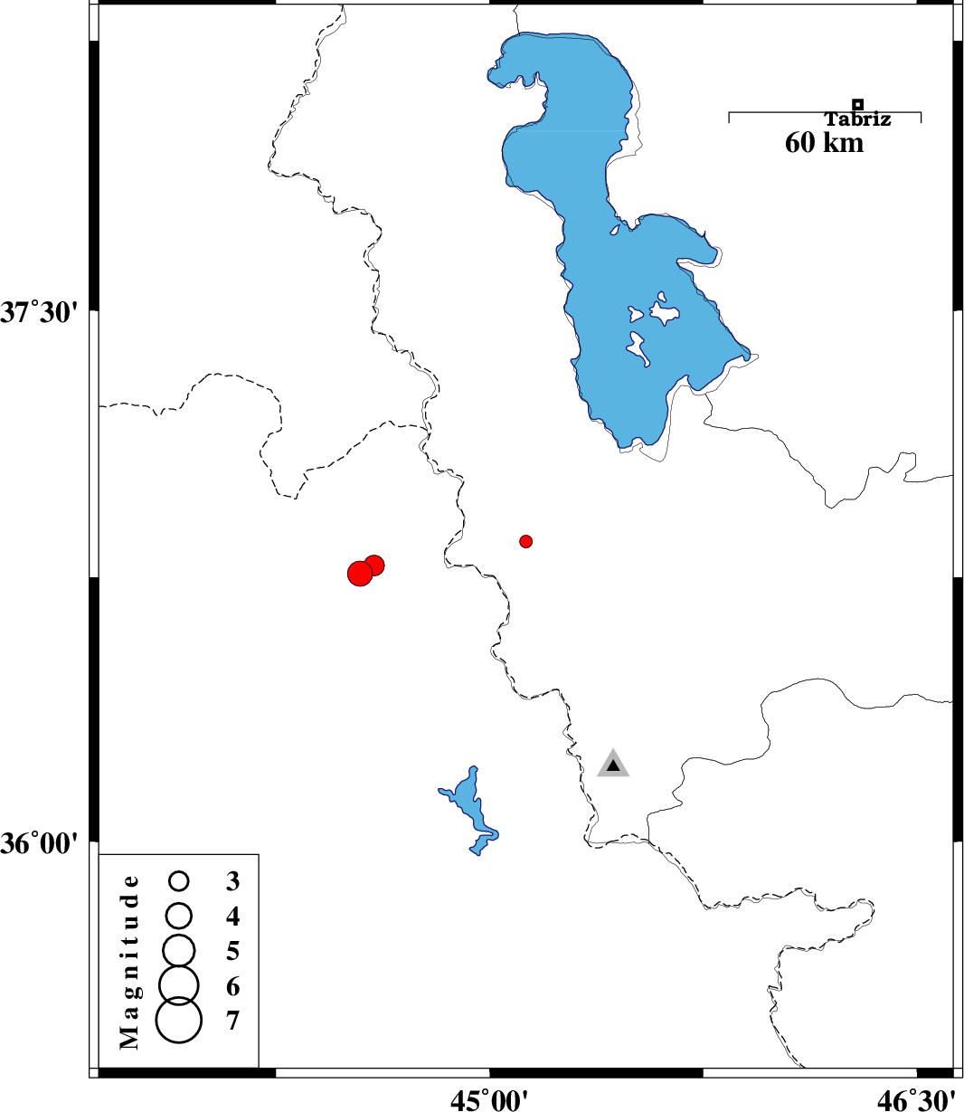 | 2018/10/14 | 15:08:31.5 | 18:38:31.5 | 36.76 | 44.544 | 14 | ML4 | Iraq, 53 km -West of Piranshahr | ||