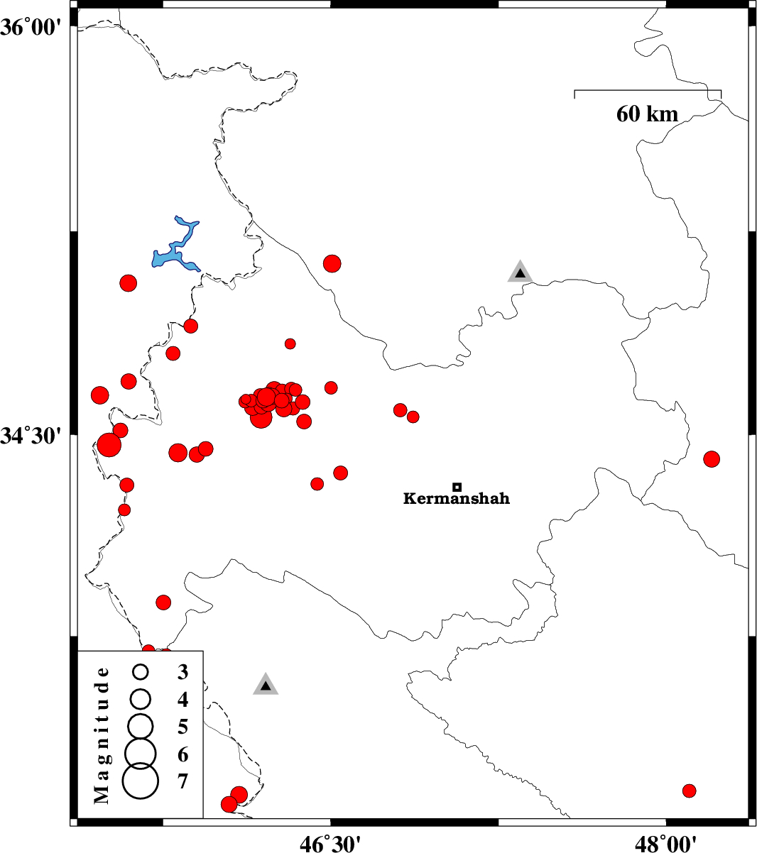 2018/09/30 | 23:49:24.6 | 03:19:24.6 | 34.564 | 46.189 | 15 | ML:4.4 | Kermanshah Province, 30 km -East of Sar-e pol-e zahab | ||