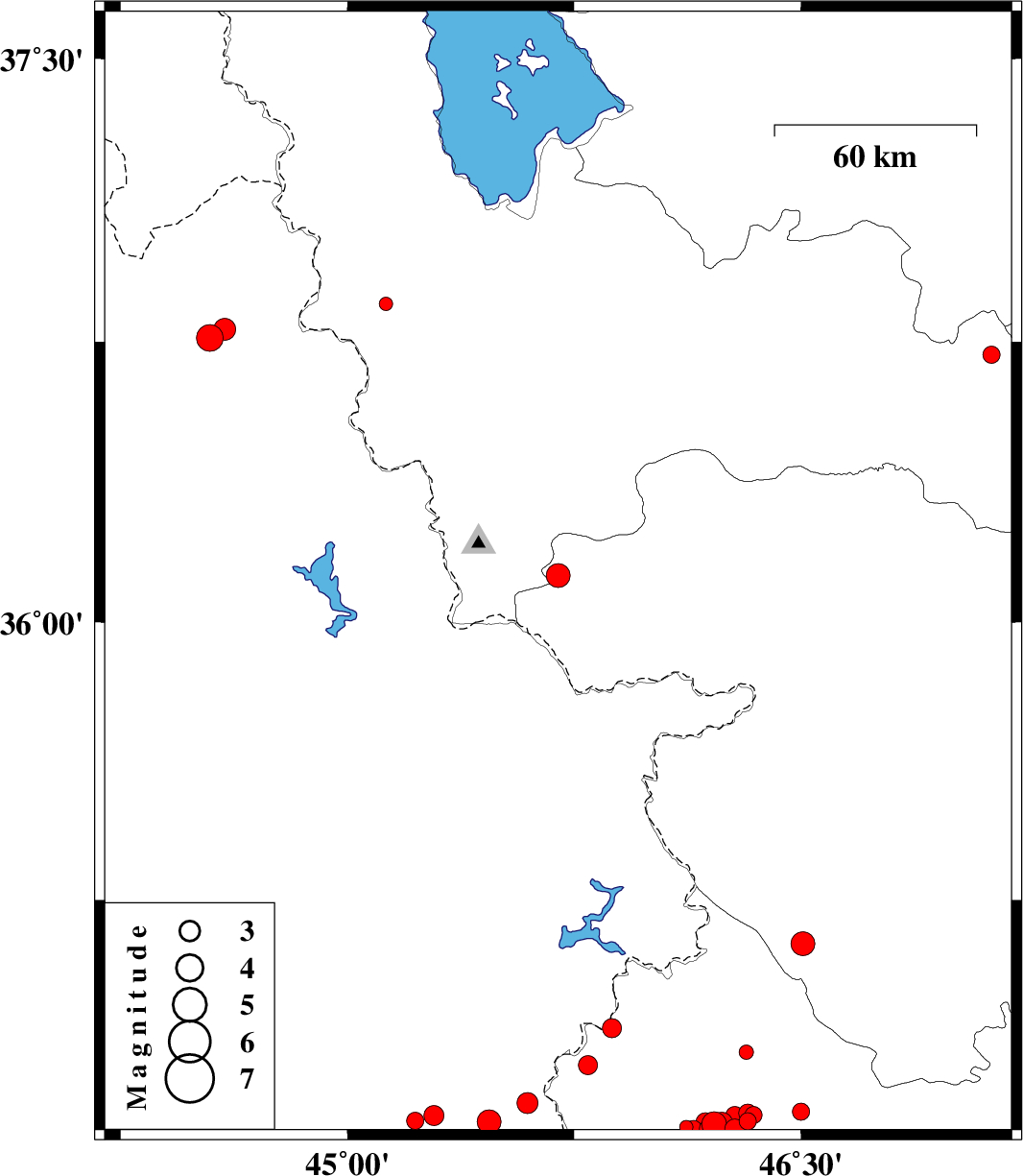 | 2018/10/14 | 15:08:31.5 | 18:38:31.5 | 36.76 | 44.544 | 14 | ML4 | Iraq, 53 km -West of Piranshahr | ||