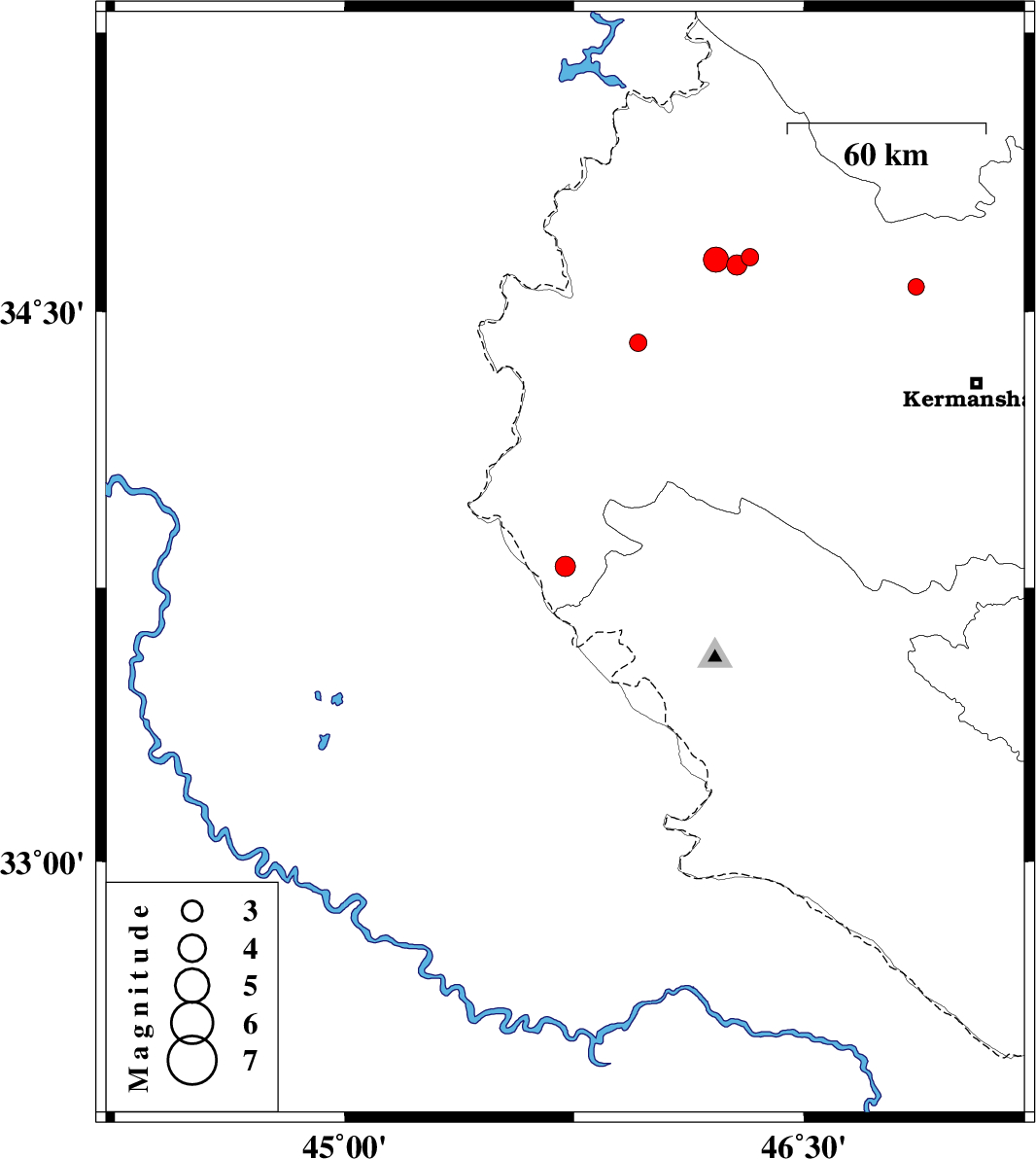 | 2018/10/26 | 19:30:55.3 | 23:00:55.3 | 33.808 | 45.721 | 14 | ML2.9 | Kermanshah Province, 41 km South-West of Gilan-E-Gharb | ||