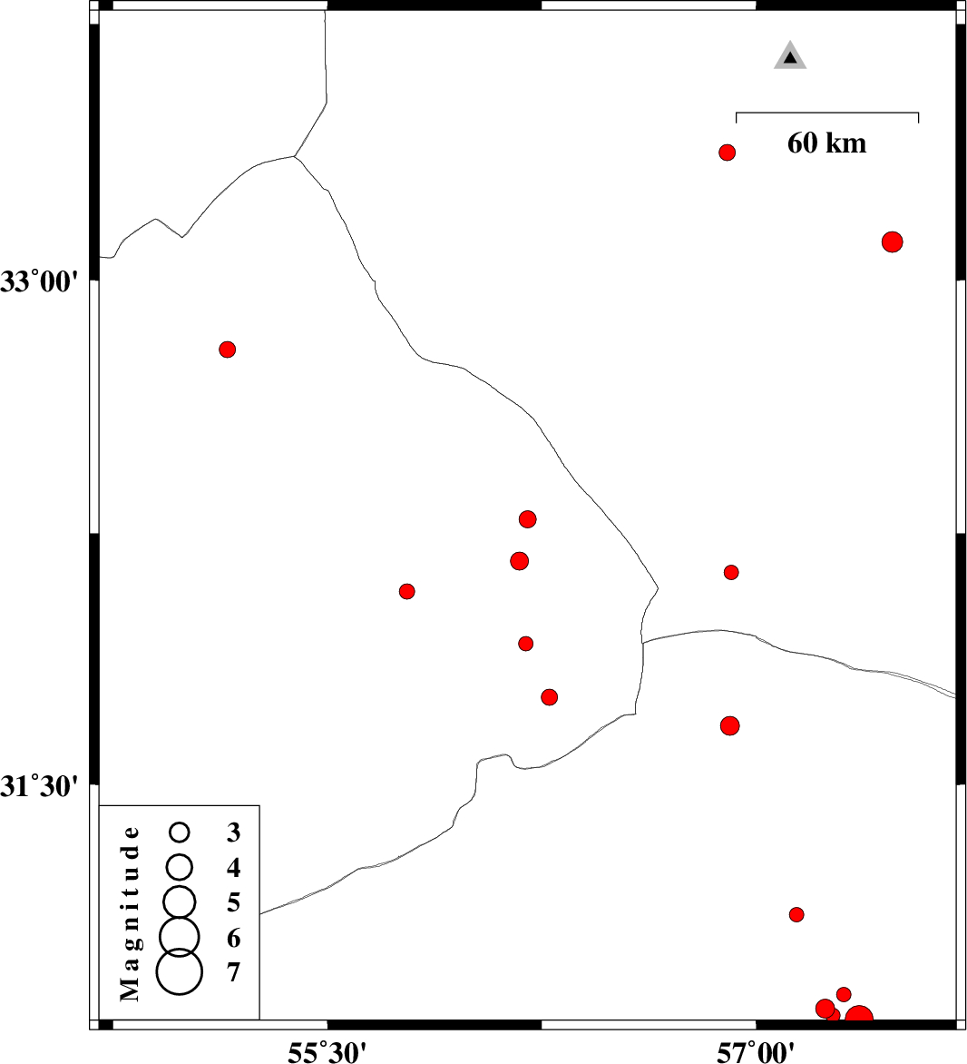 | 2018/10/06 | 00:29:58.9 | 03:59:58.9 | 31.109 | 57.142 | 14 | ML2.3 | Kerman Province, 36 km South-East of Ravar | ||