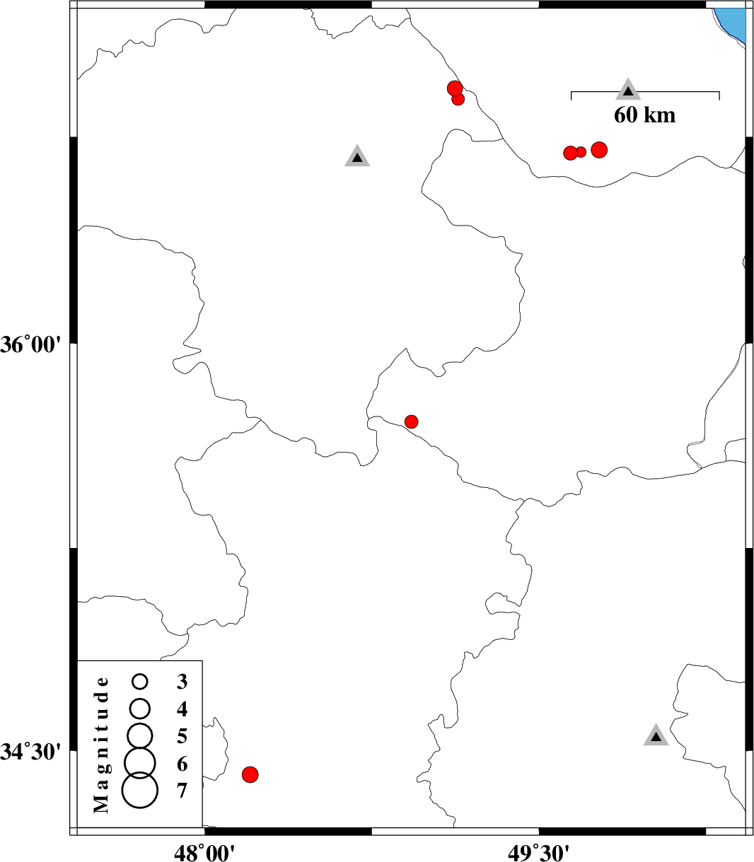 | 2018/10/23 | 00:23:29.5 | 03:53:29.5 | 36.691 | 49.642 | 15 | ML2.8 | Gilan Province, 24 km South-East of Rudbar | ||