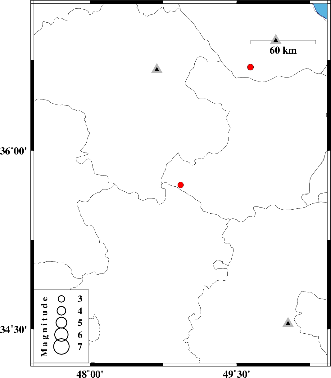 | 2018/10/23 | 00:23:29.5 | 03:53:29.5 | 36.691 | 49.642 | 15 | ML2.8 | Gilan Province, 24 km South-East of Rudbar |