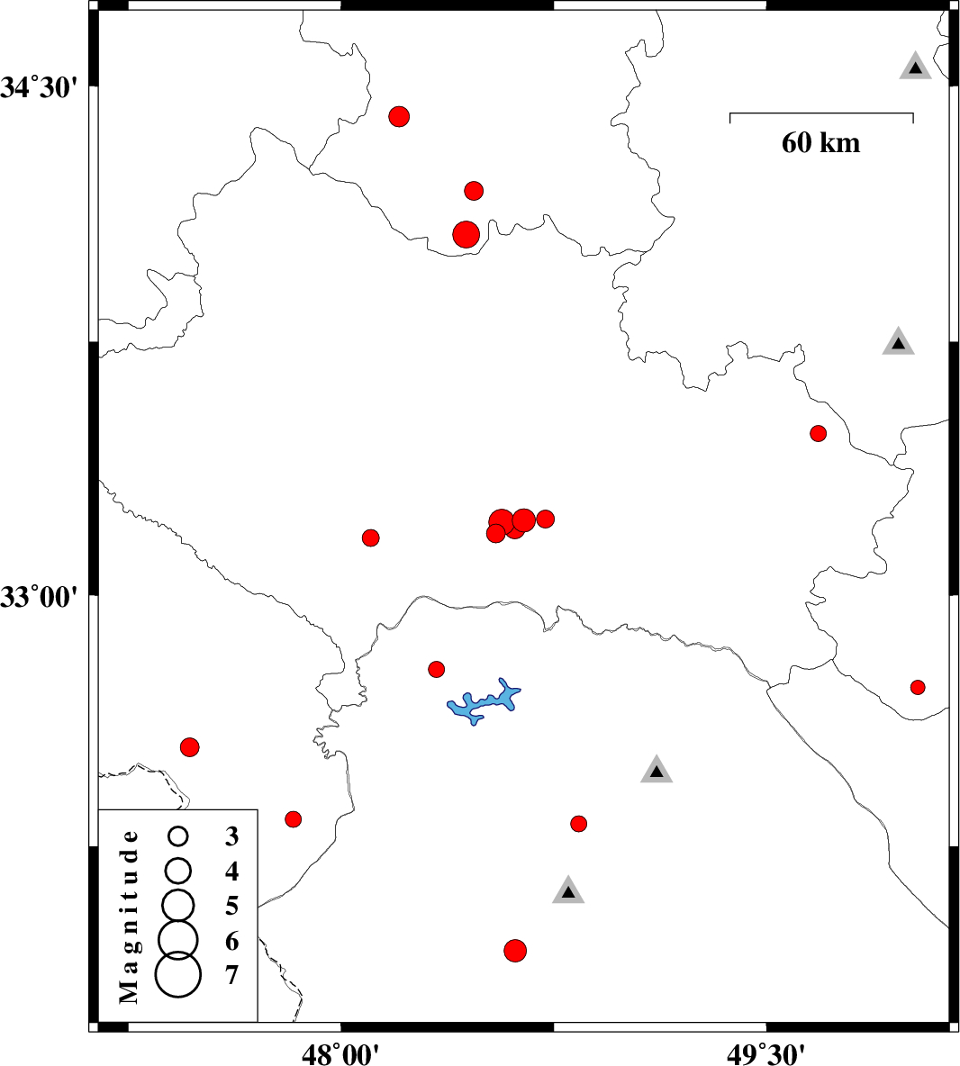 | 2018/10/29 | 13:47:00.1 | 17:17:00.1 | 33.221 | 48.644 | 14 | ML3.6 | Lorestan Province, 39 km South-East of Khorramabad | ||