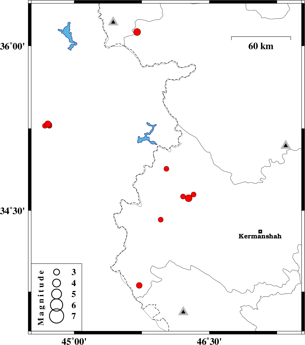 | 2018/10/23 | 00:38:08.9 | 04:08:08.9 | 34.647 | 46.325 | 14 | ML2.6 | Kermanshah Province, 23 km South-West of Javanrud |