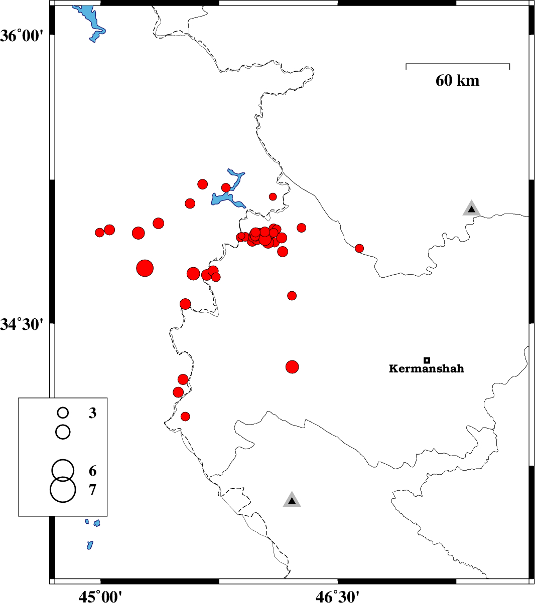 | 2018/11/01 | 15:30:46.7 | 19:00:46.7 | 34.274 | 45.766 | 14 | ML3.1 | Kermanshah Province, 20 km North-West of Gilan-E-Gharb | ||