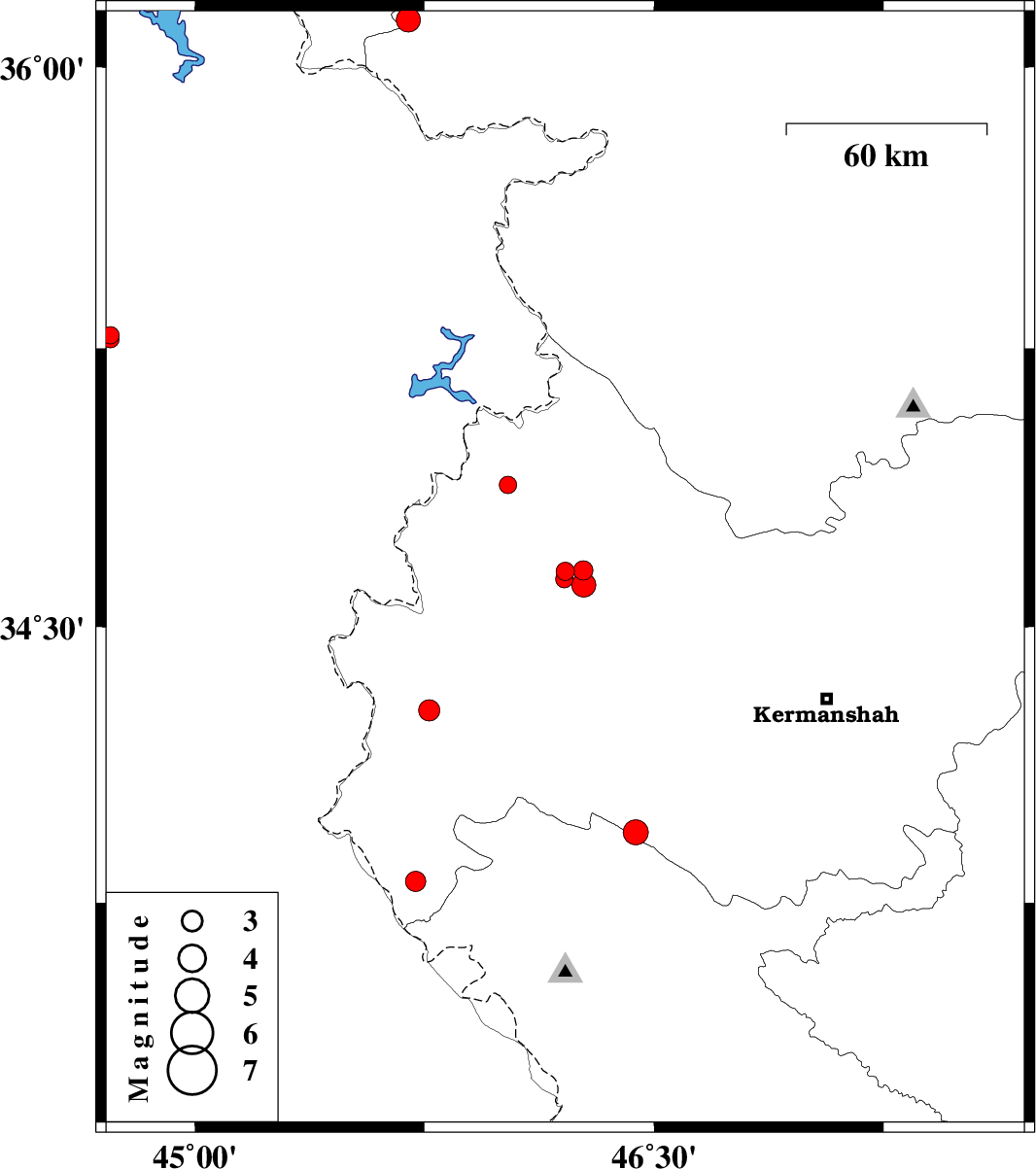 | 2018/10/26 | 19:30:55.3 | 23:00:55.3 | 33.808 | 45.721 | 14 | ML2.9 | Kermanshah Province, 41 km South-West of Gilan-E-Gharb | ||