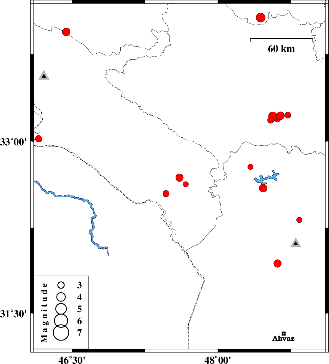 | 2018/10/03 | 09:30:26.7 | 13:00:26.7 | 31.937 | 48.614 | 15 | ML3.5 | Khoozestan Province, 25 km South-West of Shushtar |