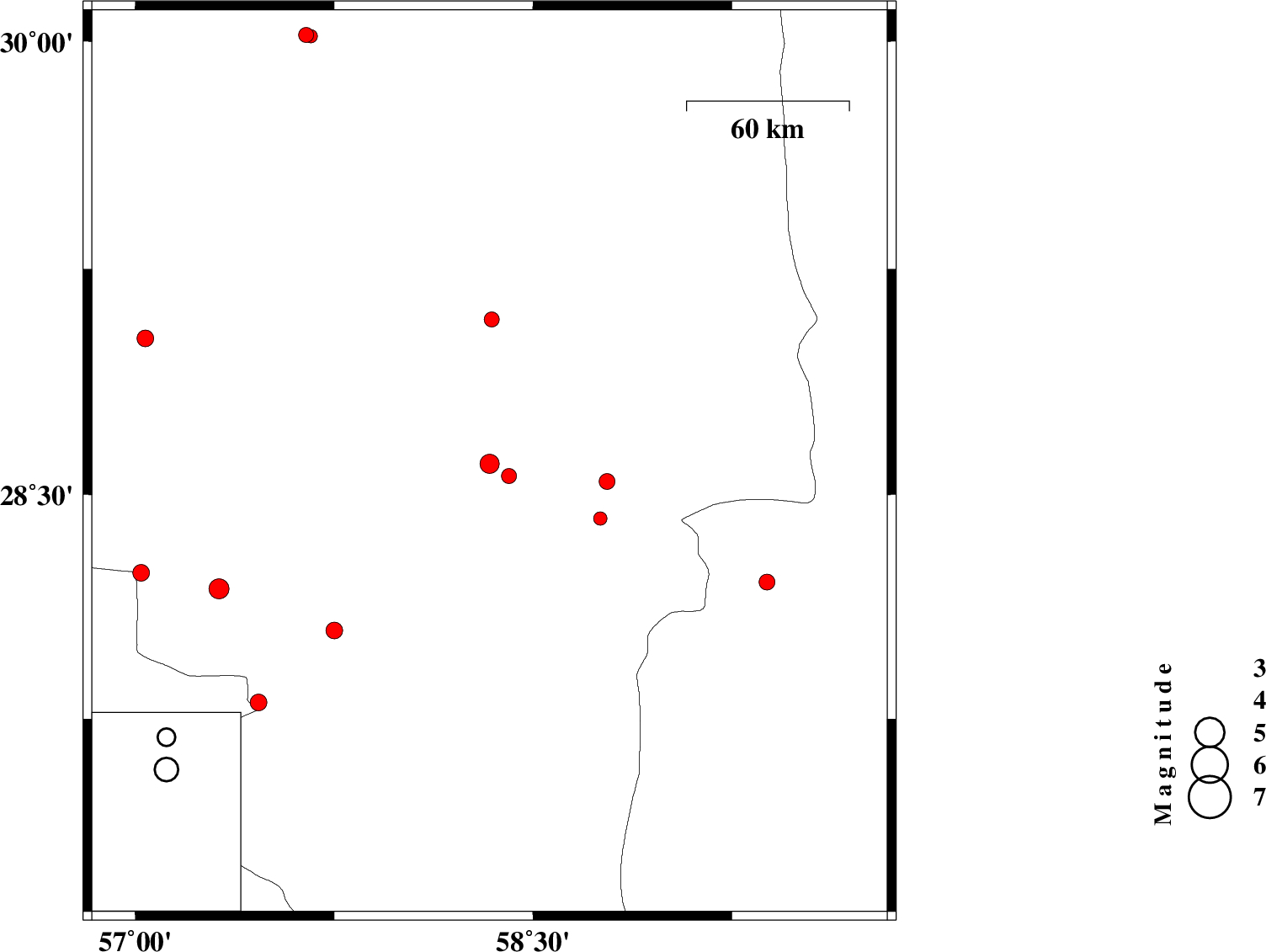 | 2018/10/06 | 20:29:04.4 | 23:59:04.4 | 28.544 | 58.779 | 14 | ML2.7 | Kerman Province, 75 km South-East of Bam |