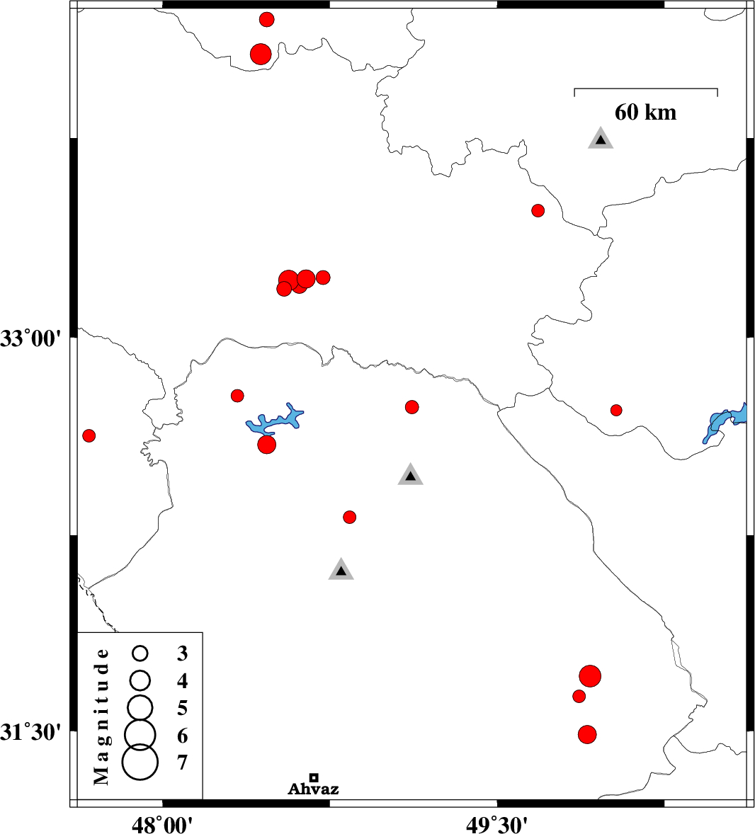 | 2018/10/31 | 20:00:19.6 | 23:30:19.6 | 32.594 | 48.467 | 15 | ML3.7 | Khoozestan Province, 18 km North-East of Andimeshk | ||