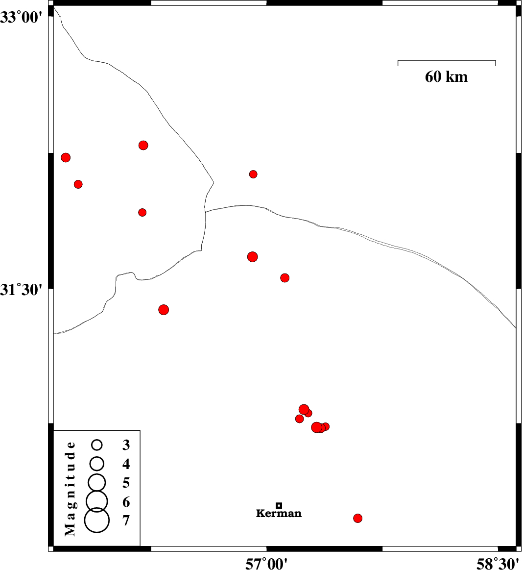 | 2018/10/19 | 05:23:59.0 | 08:53:59.0 | 30.731 | 57.38 | 14 | ML2.3 | Kerman Province, 57 km North-East of Kerman | ||