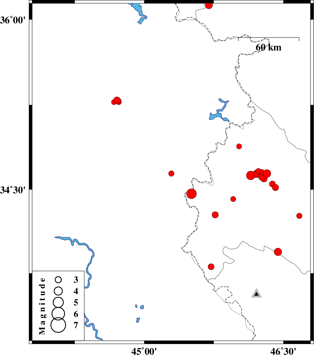 | 2018/11/02 | 13:08:10.3 | 16:38:10.3 | 34.517 | 46.415 | 14 | ML3.1 | Kermanshah Province, 35 km South of Javanrud | ||