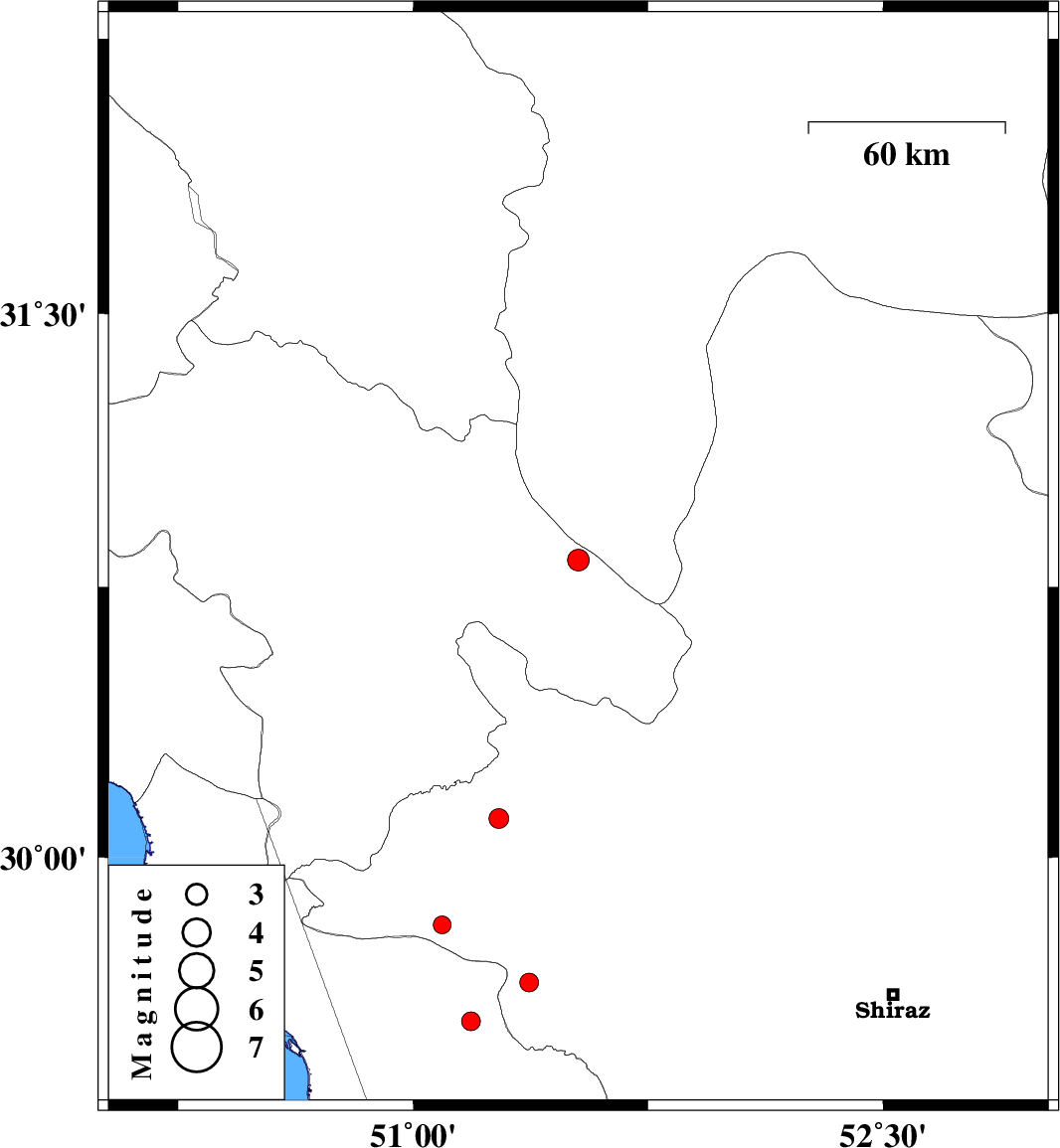 | 2018/11/04 | 15:22:23.1 | 18:52:23.1 | 29.812 | 51.092 | 14 | ML2.5 | Fars Province, 62 km North-West of Borazjan |