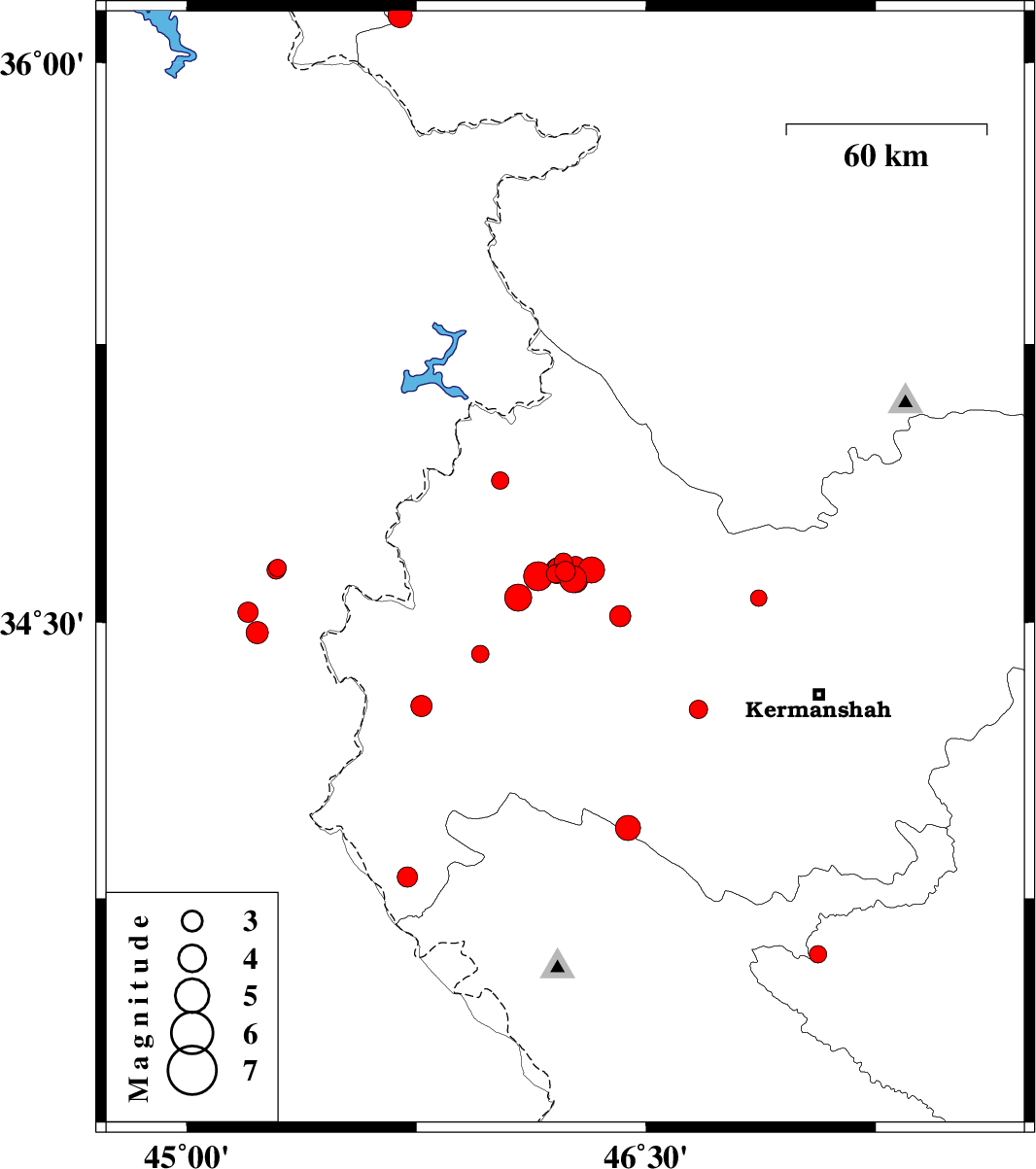| 2018/11/17 | 19:19:05.2 | 22:49:05.2 | 34.617 | 46.262 | 15 | ML4 | Kermanshah Province, 29 km South-West of Javanrud | ||