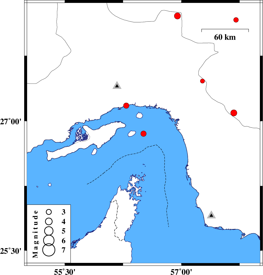 | 2018/11/06 | 04:14:42.8 | 07:44:42.8 | 28.203 | 56.949 | 14 | ML3.7 | Hormozgan Province, 78 km North-West of Kahnuj | ||