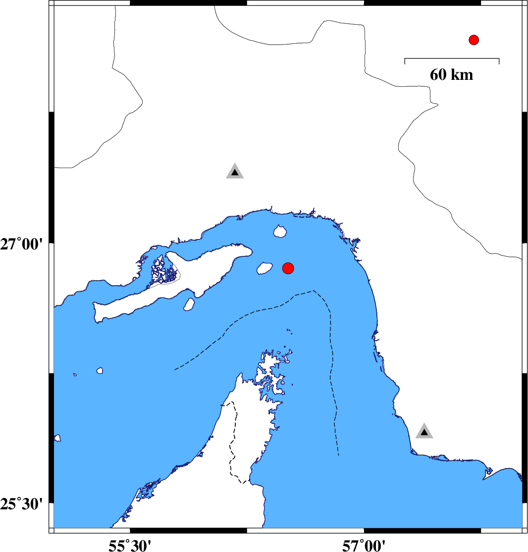 | 2018/11/12 | 21:27:04.8 | 00:57:04.8 | 28.158 | 57.704 | 18 | ML2.8 | Kerman Province, 23 km North of Kahnuj |