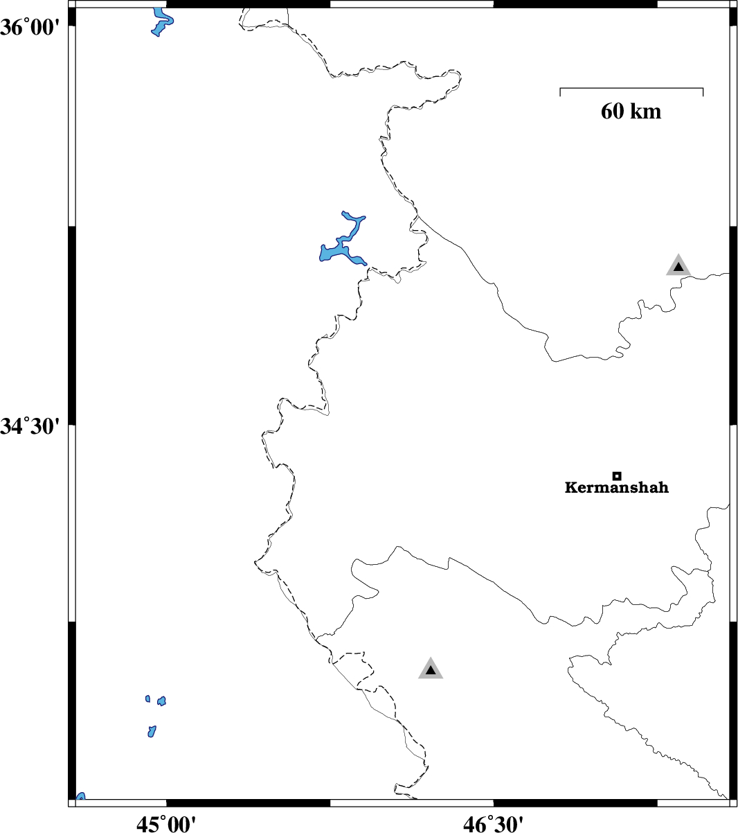 | 2018/11/01 | 16:35:55.3 | 20:05:55.3 | 33.942 | 46.441 | 15 | ML3.6 | Kermanshah Province, 18 km North-East of Eyvan | ||