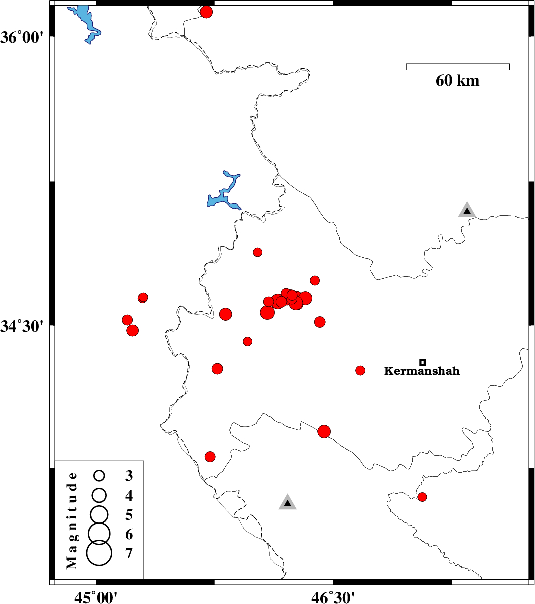 | 2018/11/21 | 02:42:11.2 | 06:12:11.2 | 34.624 | 46.091 | 16 | ML2.8 | Kermanshah Province, 26 km North-East of Sar-e pol-e zahab | ||