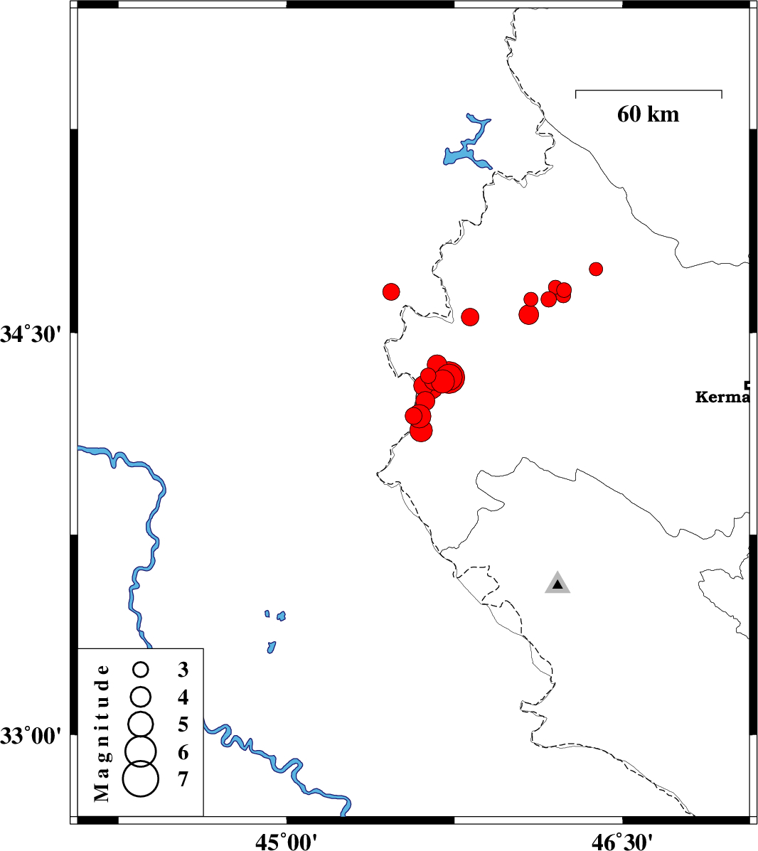 | 2018/11/25 | 17:27:00.4 | 20:57:00.4 | 34.324 | 45.66 | 15 | ML4 | Kermanshah Province, 22 km South of Qasr-E-Shirin | ||