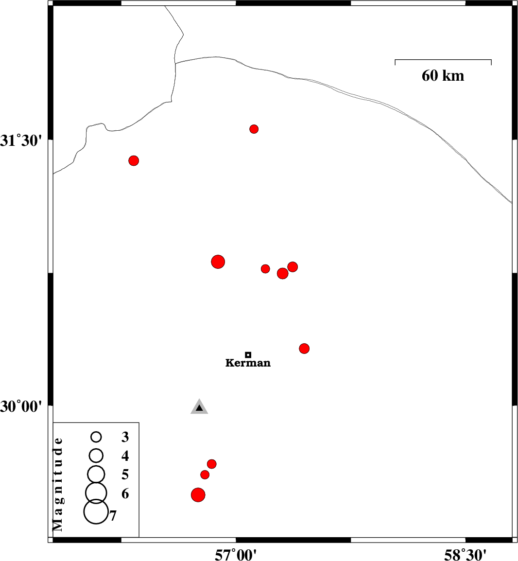 | 2018/11/09 | 10:13:50.1 | 13:43:50.1 | 29.49 | 56.752 | 7 | ML4.1 | Kerman Province, 32 km North-East of Baft |