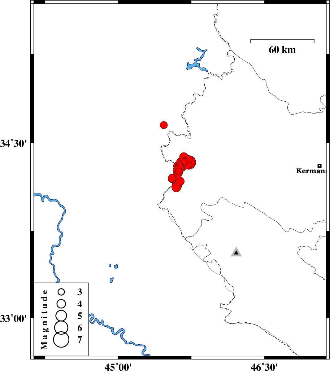 | 2018/11/26 | 01:19:42.6 | 04:49:42.6 | 34.32 | 45.697 | 17 | ML4.6 | Kermanshah Province, 24 km South-East of Qasr-E-Shirin | ||