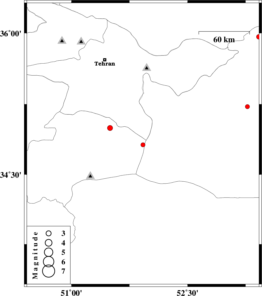 | 2018/11/14 | 02:13:28.9 | 05:43:28.9 | 35.961 | 53.421 | 15 | ML2.8 | Semnan Province, 44 km North of Semnan |