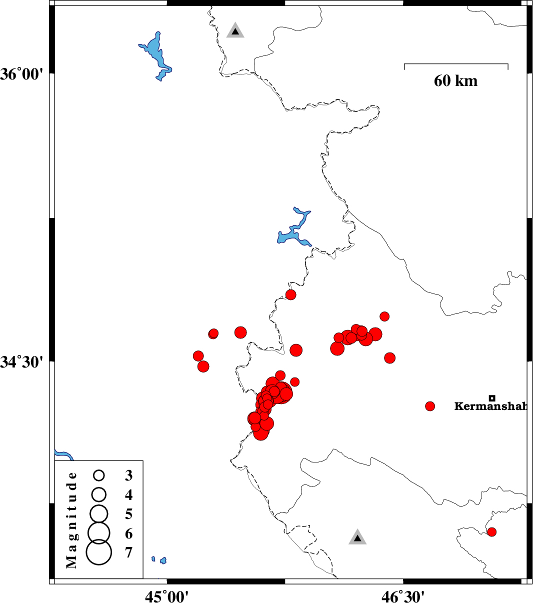 | 2018/11/26 | 01:19:42.6 | 04:49:42.6 | 34.32 | 45.697 | 17 | ML4.6 | Kermanshah Province, 24 km South-East of Qasr-E-Shirin | ||