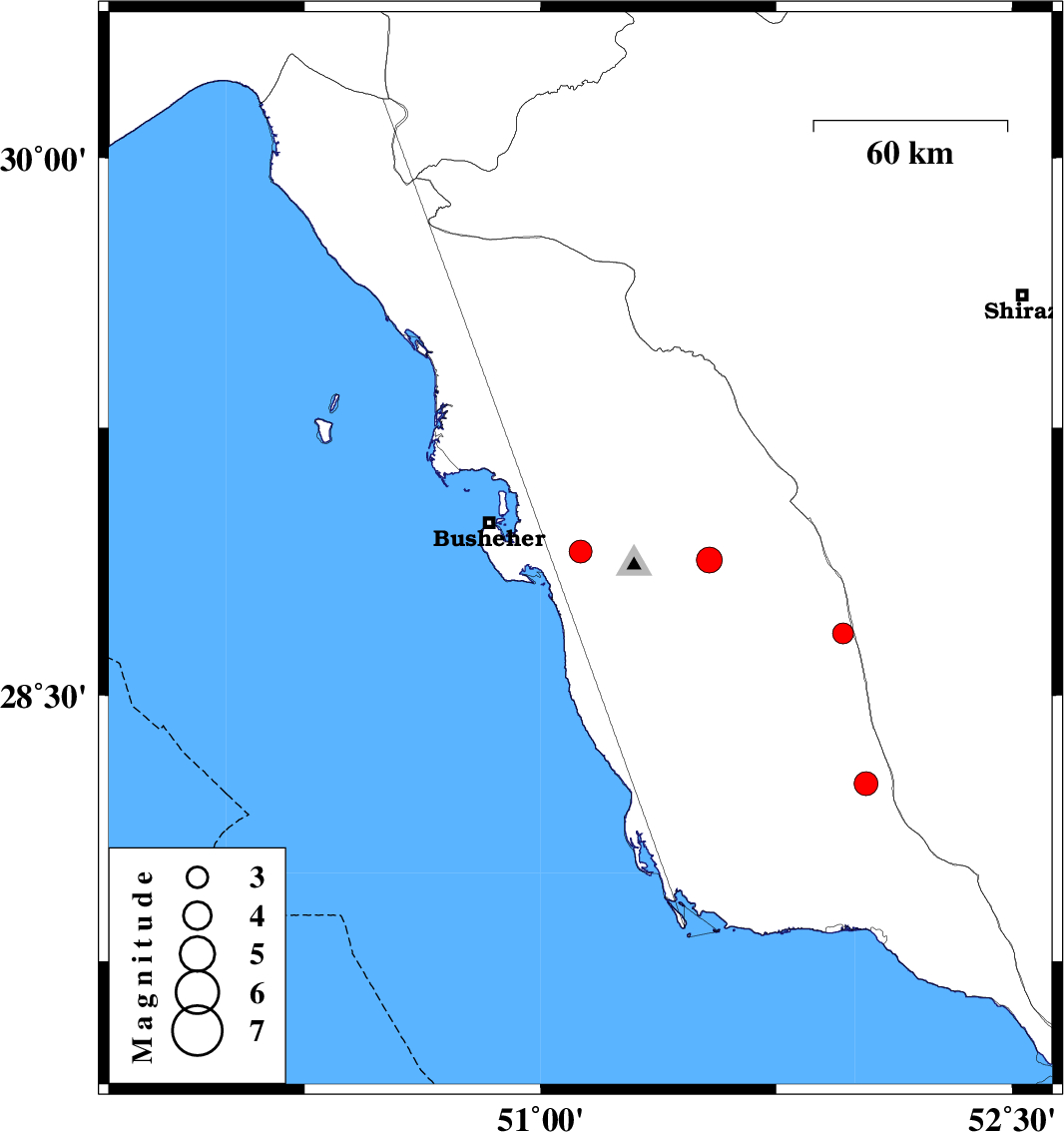 | 2018/11/26 | 00:49:47.5 | 04:19:47.5 | 28.88 | 51.536 | 10 | ML3.7 | Bushehr Province, 27 km -East of Ahram |