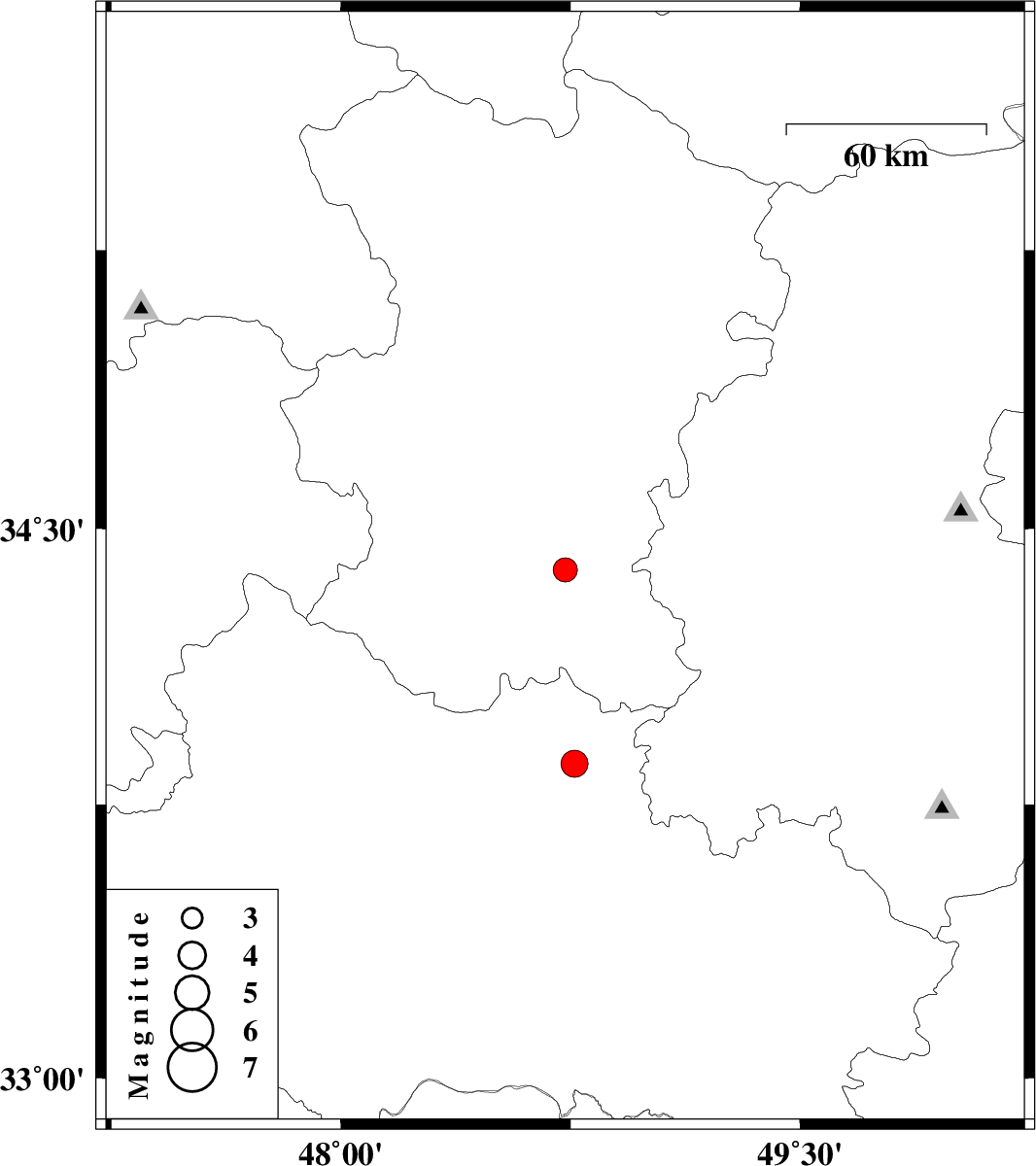 | 2018/11/26 | 10:55:26.7 | 14:25:26.7 | 33.862 | 48.763 | 15 | ML3.9 | Lorestan Province, 4 km of Borujerd |