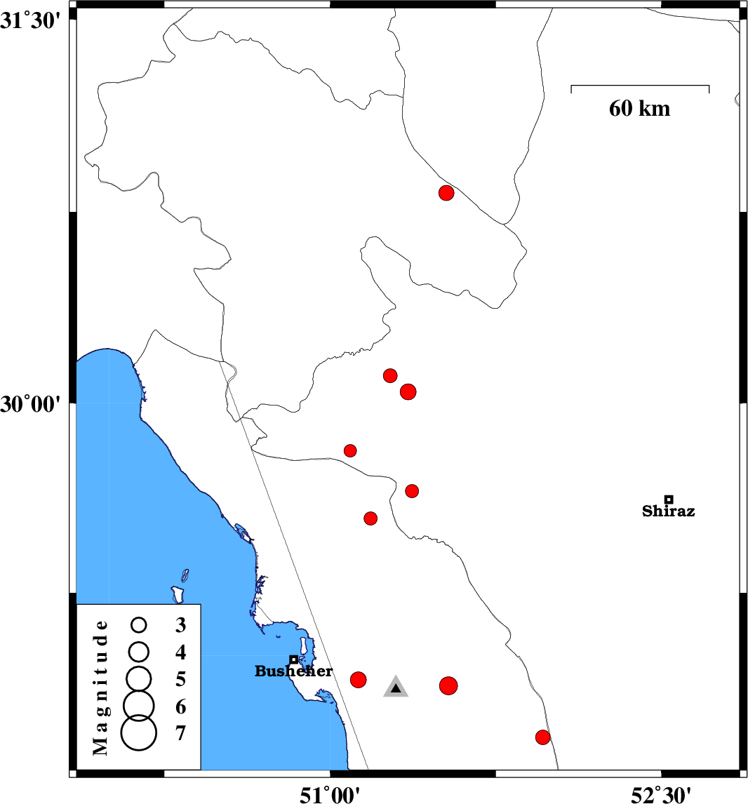 | 2018/11/12 | 05:15:42.2 | 08:45:42.2 | 29.544 | 51.184 | 14 | ML2.7 | Bushehr Province, 31 km North of Borazjan | ||