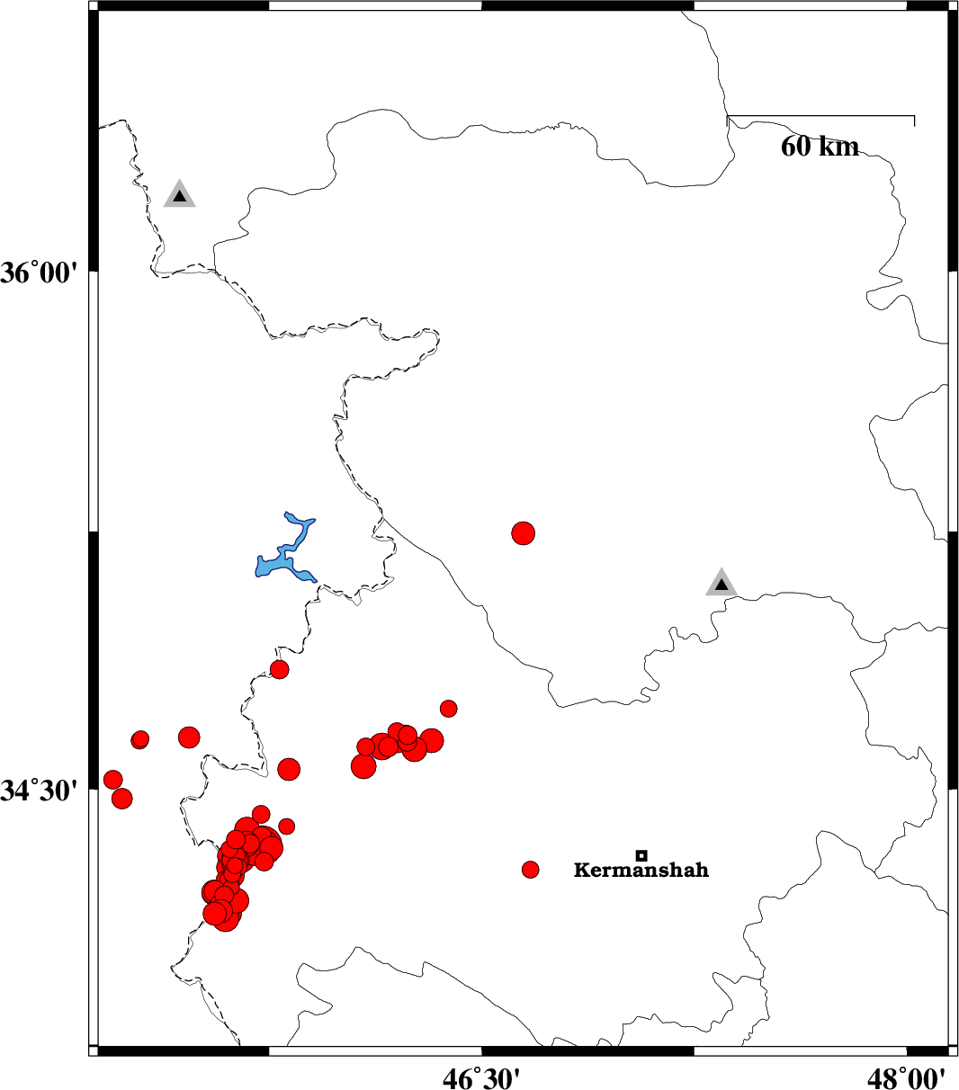 | 2018/11/30 | 06:46:34.8 | 10:16:34.8 | 34.173 | 45.634 | 16 | ML3.9 | Kermanshah Province, 26 km -West of Gilan-E-Gharb | ||