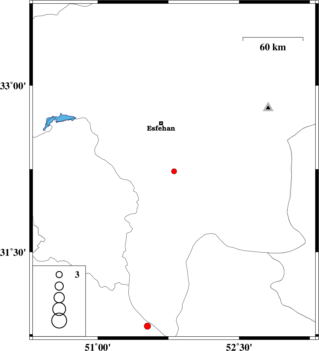 2018/12/05 | 00:38:36.3 | 04:08:36.3 | 32.23 | 51.81 | 6 | ML2.6 | Esfahan Province, 25 km North of Shahreza | ||
