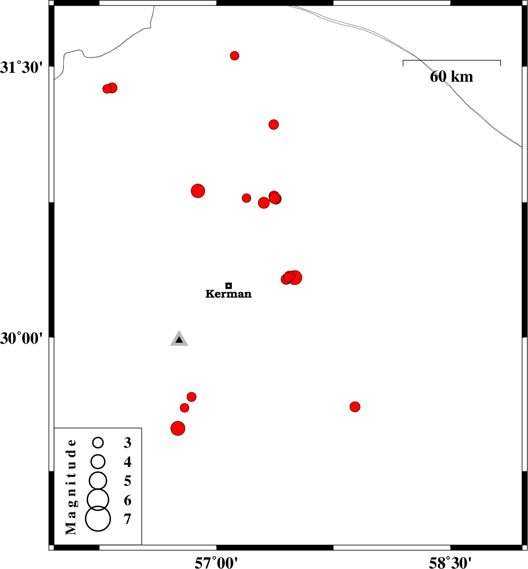 2018/12/06 01:46:49.6 05:16:49.6 30.33257.50214 ML4.1 Kerman Province, 41 km -East of Kerman