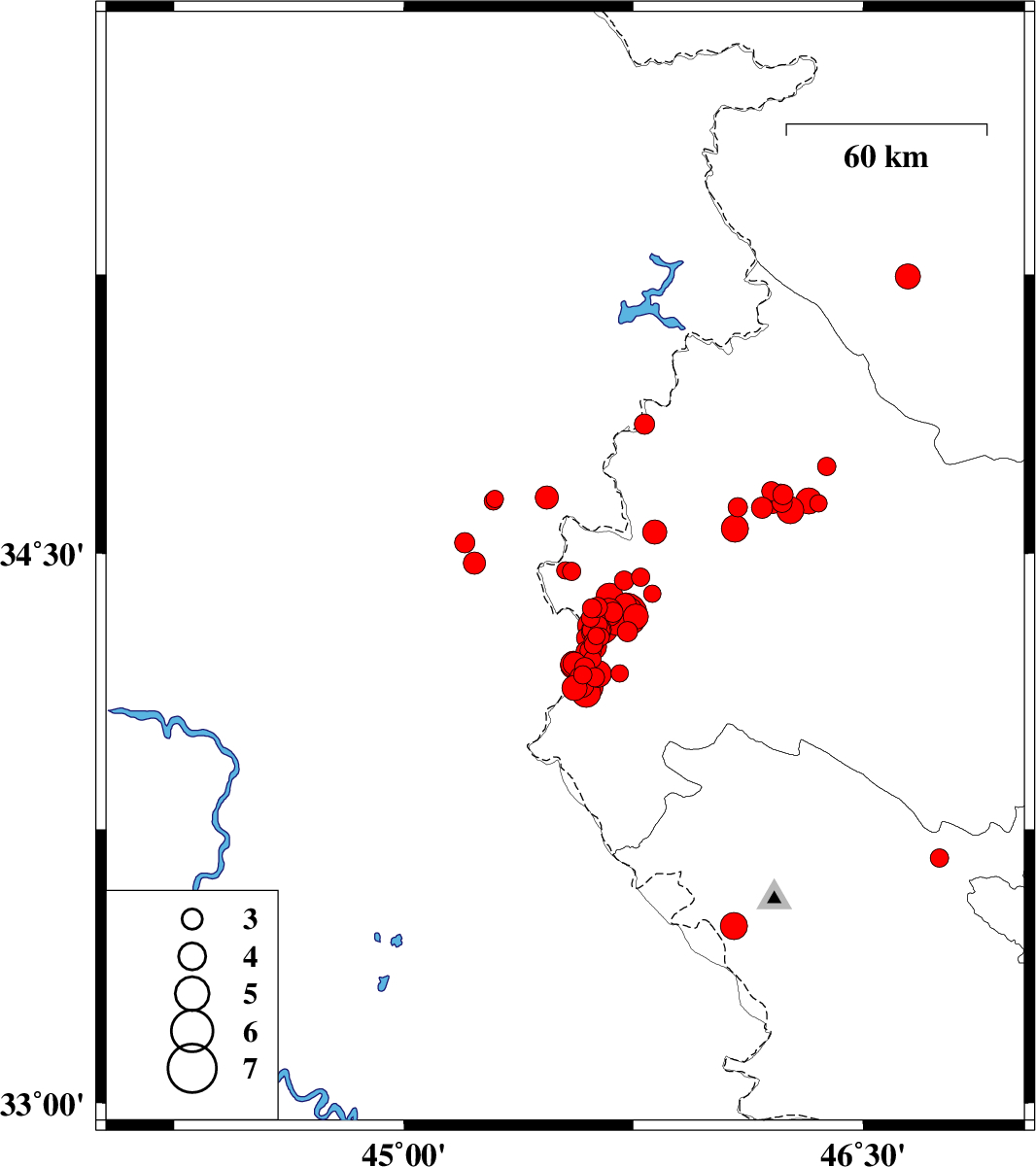 | 2018/11/25 | 17:27:00.4 | 20:57:00.4 | 34.324 | 45.66 | 15 | ML4 | Kermanshah Province, 22 km South of Qasr-E-Shirin | ||