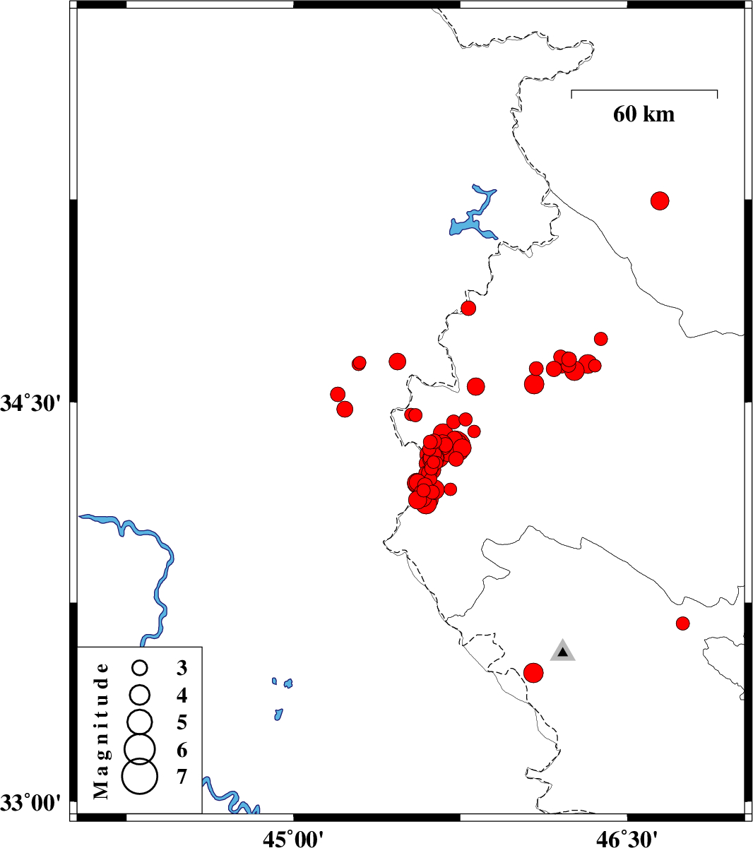 | 2018/11/25 | 16:37:32.2 | 20:07:32.2 | 34.334 | 45.724 | 18 | ML6.4 | Kermanshah Province, 21 km South-West of Sar-e pol-e zahab | ||