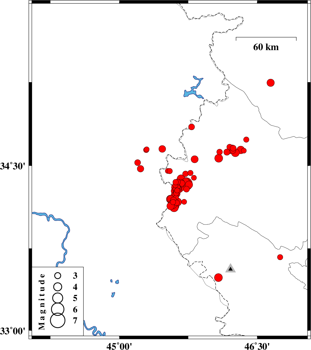 | 2018/11/25 | 16:37:32.2 | 20:07:32.2 | 34.334 | 45.724 | 18 | ML6.4 | Kermanshah Province, 21 km South-West of Sar-e pol-e zahab | ||