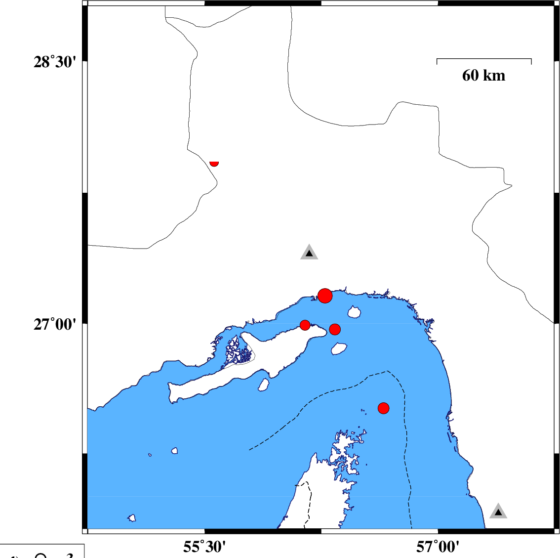 | 2018/12/04 | 02:19:27.3 | 05:49:27.3 | 27.194 | 56.155 | 11 | ML2.9 | Hormozgan Province, 13 km -West of Bandar-e abbas | ||
