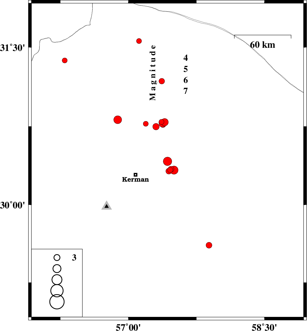 | 2018/12/10 | 14:38:20.6 | 18:08:20.6 | 30.792 | 57.364 | 15 | ML2.6 | Kerman Province, 62 km North-East of Kerman | ||