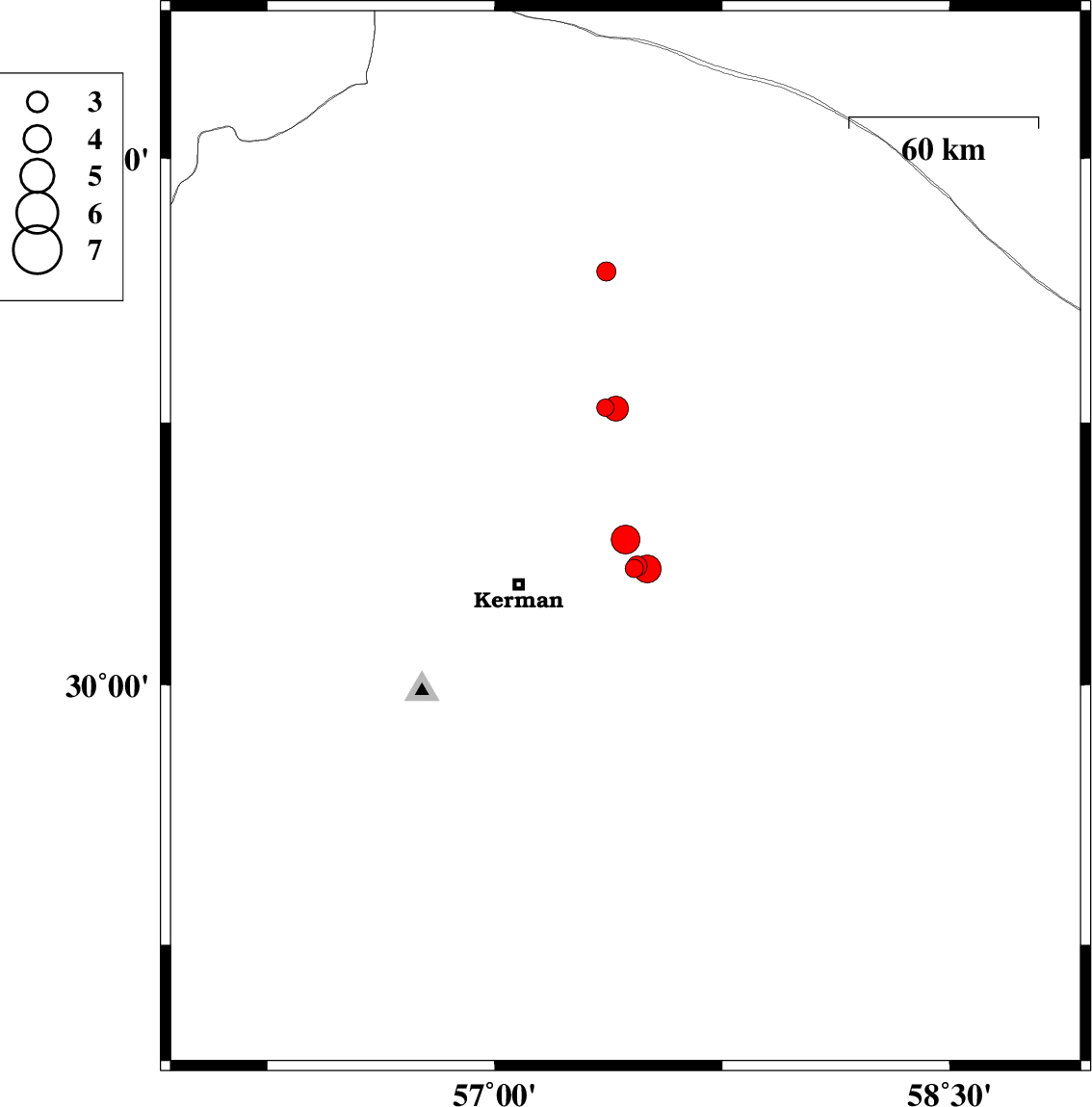 | 2018/12/07 | 23:43:59.9 | 03:13:59.9 | 30.334 | 57.459 | 14 | ML2.7 | Kerman Province, 37 km -East of Kerman | ||