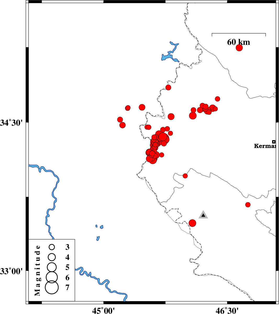 | 2018/11/27 | 06:36:34.3 | 10:06:34.3 | 34.34 | 45.668 | 16 | ML4.1 | Kermanshah Province, 21 km South of Qasr-E-Shirin | ||