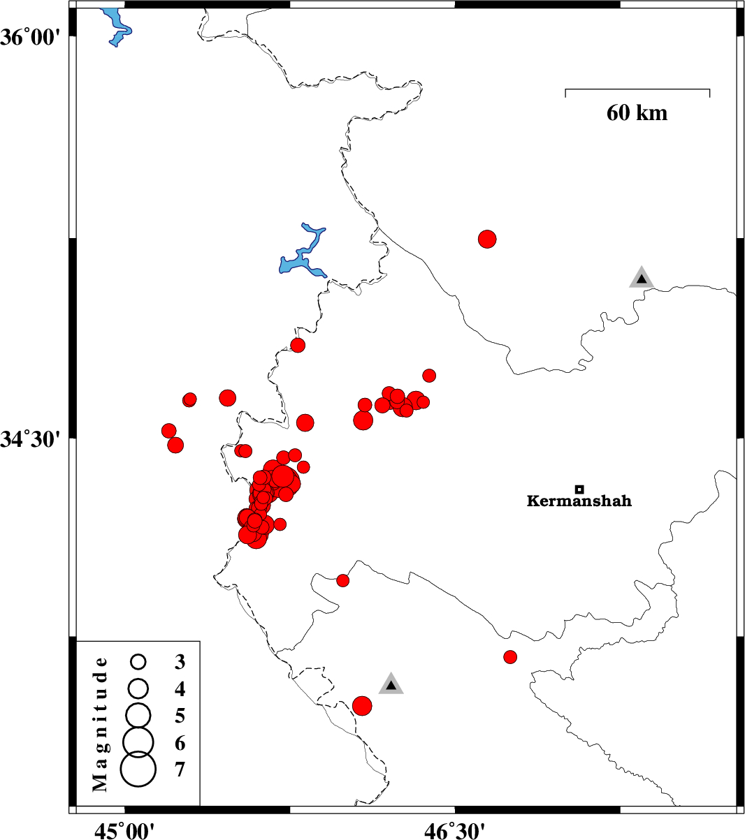 | 2018/11/27 | 06:36:34.3 | 10:06:34.3 | 34.34 | 45.668 | 16 | ML4.1 | Kermanshah Province, 21 km South of Qasr-E-Shirin | ||