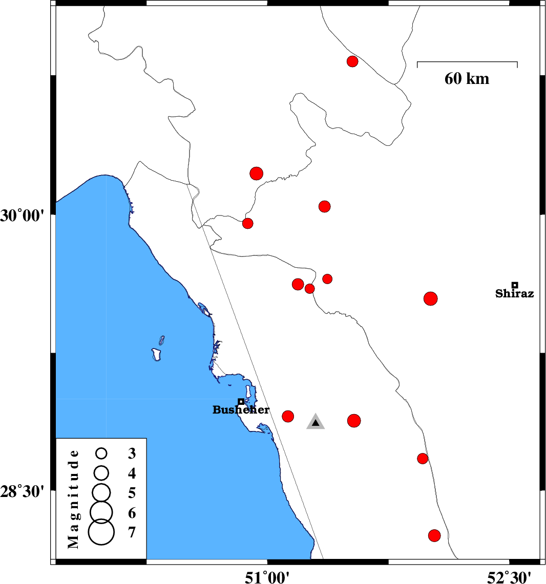 2018/11/26 00:49:47.5 04:19:47.5 28.8851.53610 ML3.7 Bushehr Province, 27 km -East of Ahram