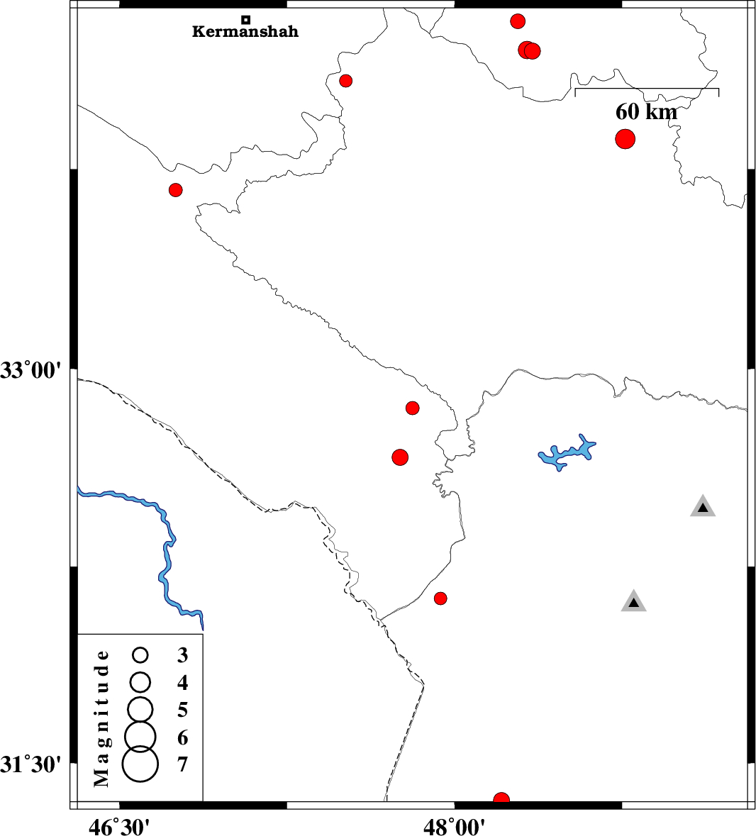 | 2018/12/07 | 11:29:54.1 | 14:59:54.1 | 32.665 | 47.755 | 14 | ML3.2 | Ilam Province, 46 km -East of Dehloran | ||