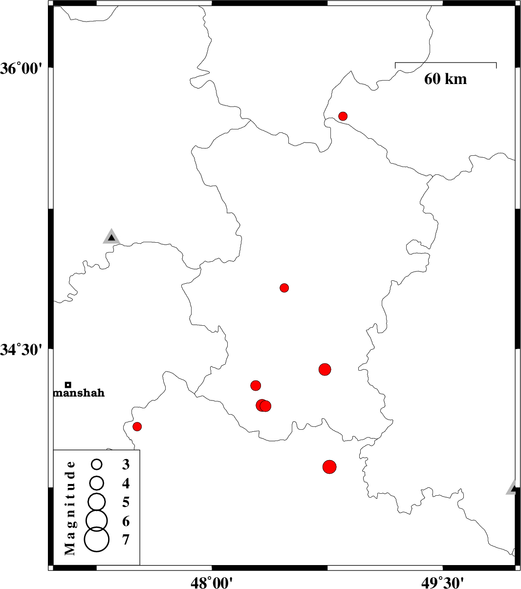 | 2018/12/09 | 15:43:25.8 | 19:13:25.8 | 34.194 | 48.324 | 15 | ML3.5 | Hamedan Province, 4 km of Nahavand | ||