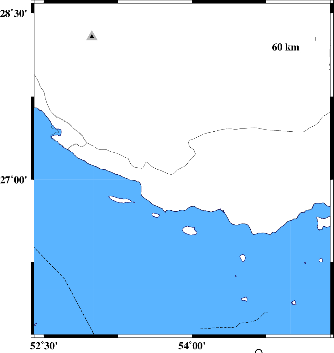 | 2018/12/05 | 07:38:51.7 | 11:08:51.7 | 27.028 | 54.26 | 15 | ML3.4 | Hormozgan Province, 21 km South-West of Bastak | ||