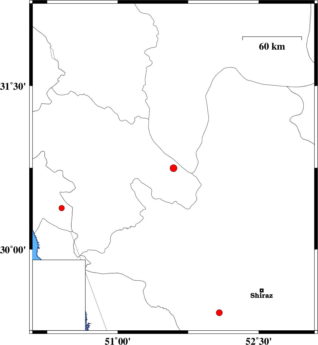 | 2018/12/16 | 04:05:58.0 | 07:35:58.0 | 29.413 | 52.081 | 15 | ML2.9 | Fars Province, 60 km North of Farashband |