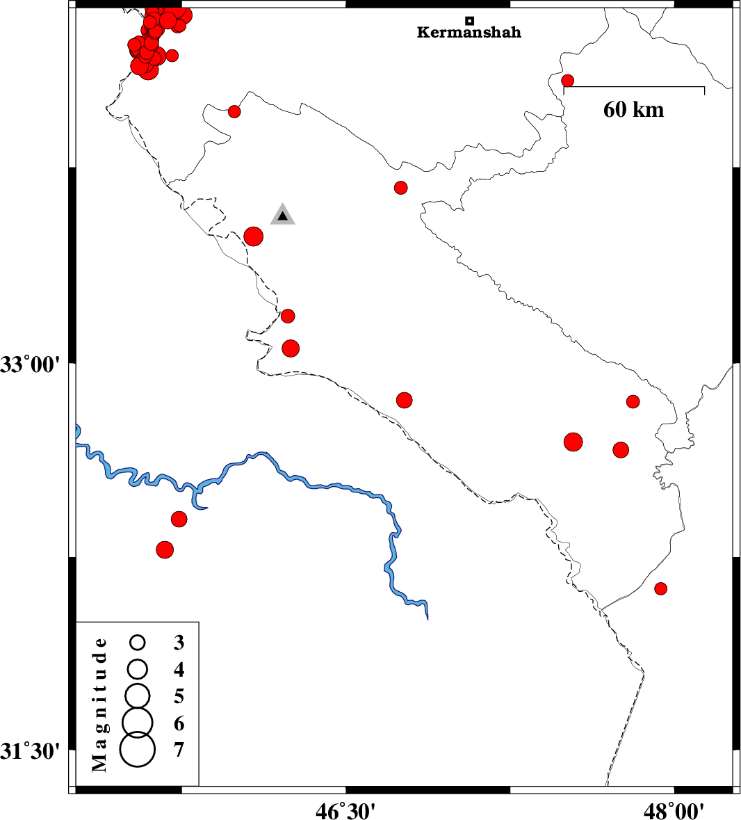 | 2018/12/26 | 06:57:43.1 | 10:27:43.1 | 32.857 | 46.766 | 14 | ML3.3 | Ilam Province, 50 km North-West of Dehloran | ||