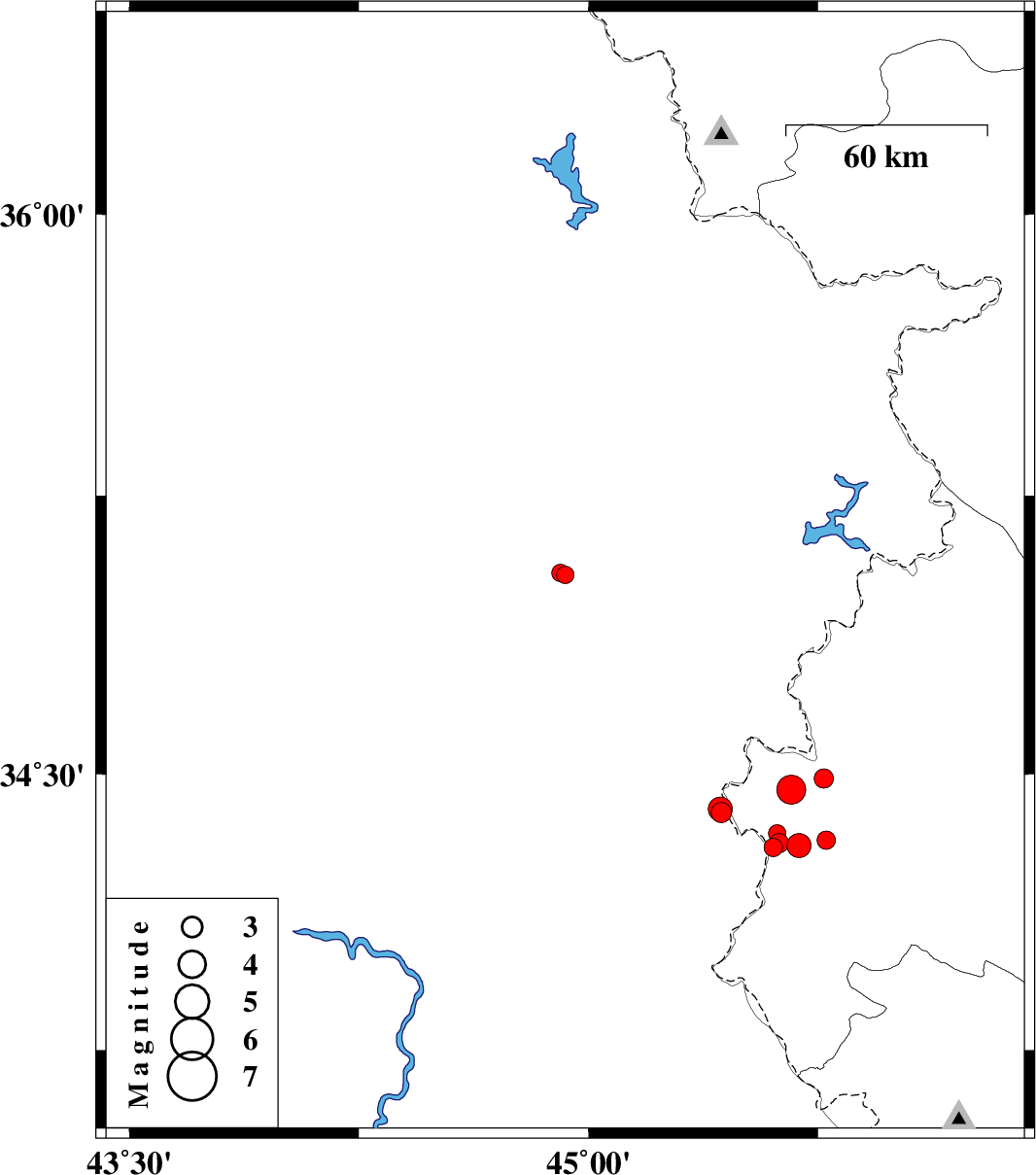 | 2018/12/22 | 23:45:20.2 | 03:15:20.2 | 34.34 | 45.617 | 15 | ML2.6 | Kermanshah Province, 20 km South of Qasr-E-Shirin |