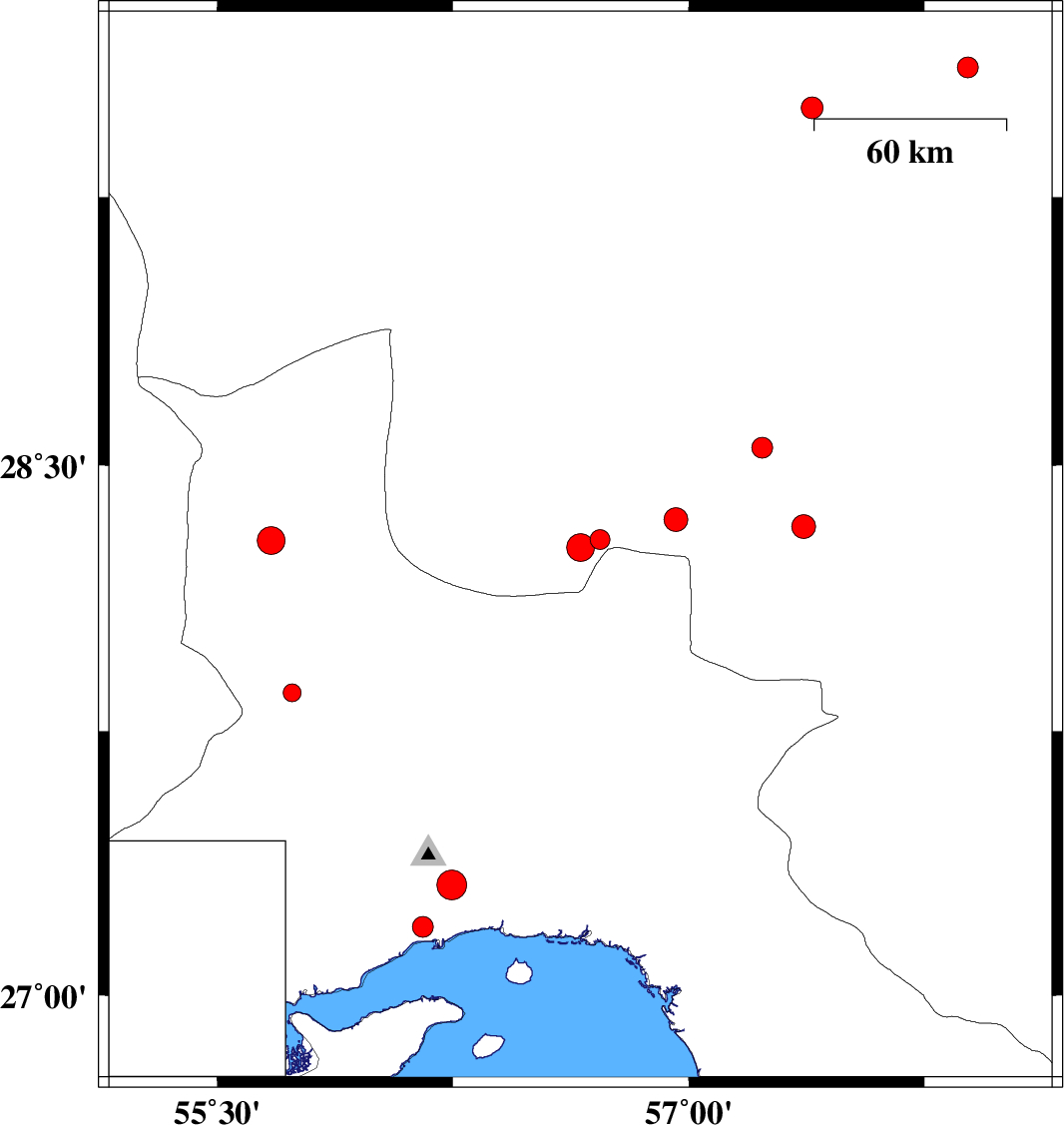 | 2018/12/04 | 02:19:27.3 | 05:49:27.3 | 27.194 | 56.155 | 11 | ML2.9 | Hormozgan Province, 13 km -West of Bandar-e abbas | ||